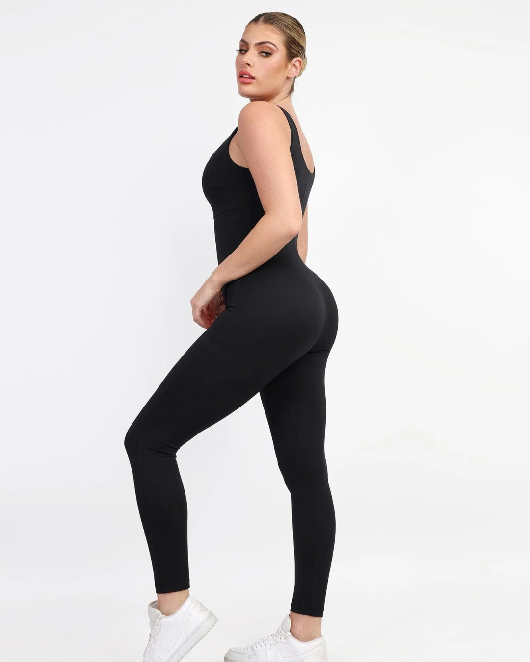 Este macacão modelador proporciona controle da barriga e valoriza as curvas naturais com conforto. Ideal para treinos, passeios ou composições estilosas, adapta-se ao corpo sem marcar e garante um visual sofisticado em qualquer ocasião.
