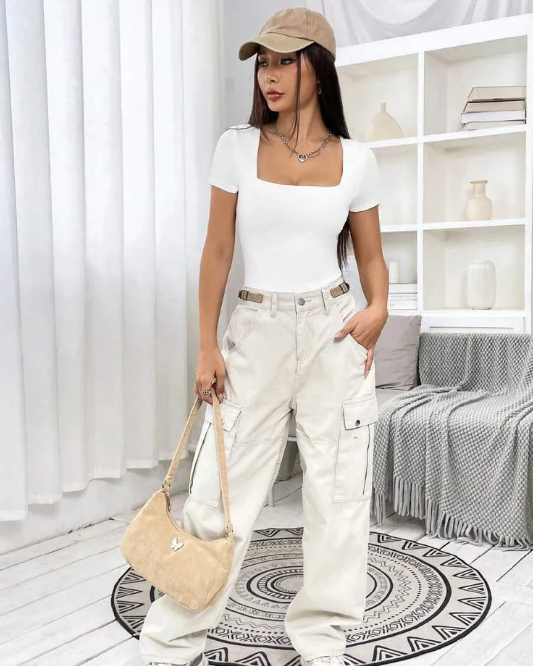Body de manga curta com estilo casual e ajuste lisonjeiro.