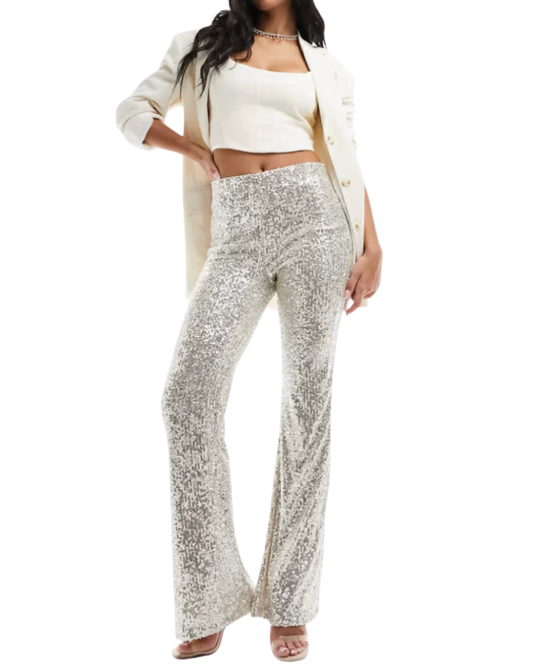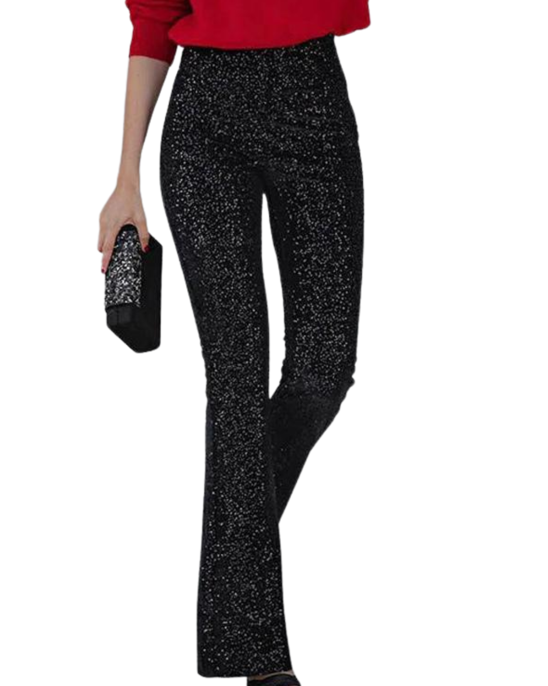 Estas calças de lantejoulas foram projetadas para destacar o seu visual em eventos elegantes. O design moderno e cintilante oferece um toque sofisticado, perfeito para festas, celebrações ou noites glamorosas.