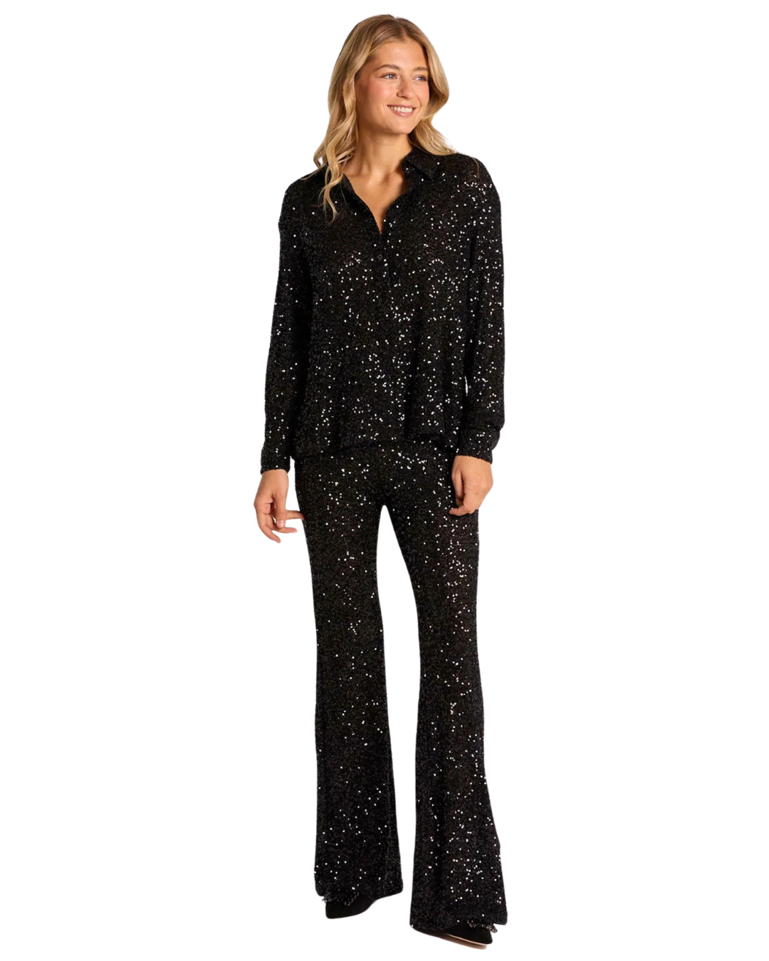 Fabricadas com materiais de qualidade premium, estas calças mantêm o brilho das lantejoulas mesmo após várias utilizações. Além disso, o forro interno macio oferece conforto ao longo do dia ou da noite.