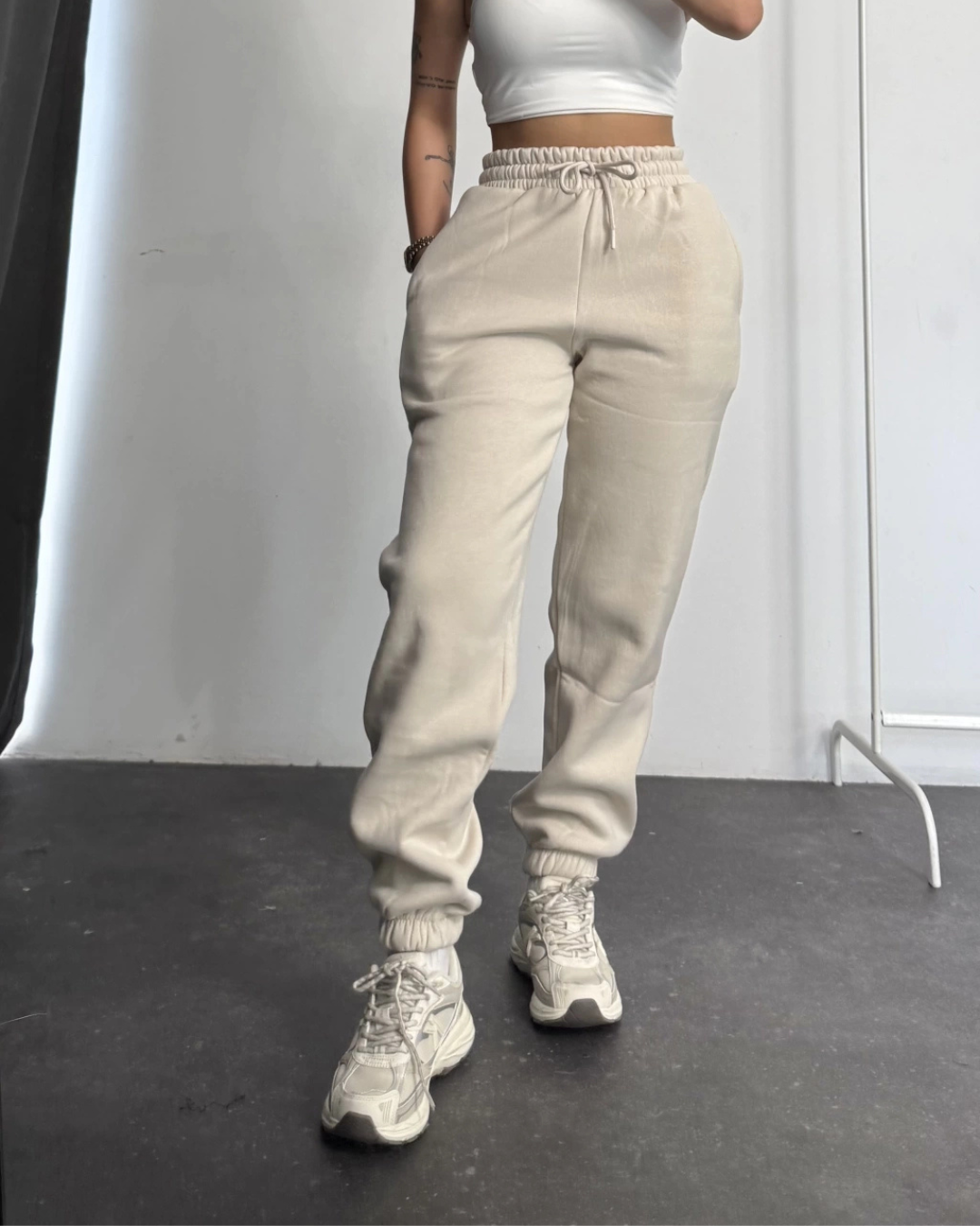 Estas calças desportivas combinam a resistência do algodão com a suavidade ideal para o dia a dia. O seu design folgado e cintura elástica permitem-lhe mover-se com total conforto, seja em treinos ou atividades informais. Uma peça versátil que se adapta tanto ao desporto como aos seus passeios casuais com um look descontraído.