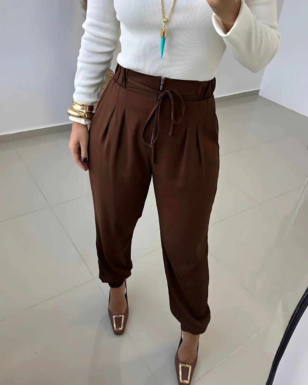 Calças Jogger de Bombazina com Cintura Elástica para Mulher