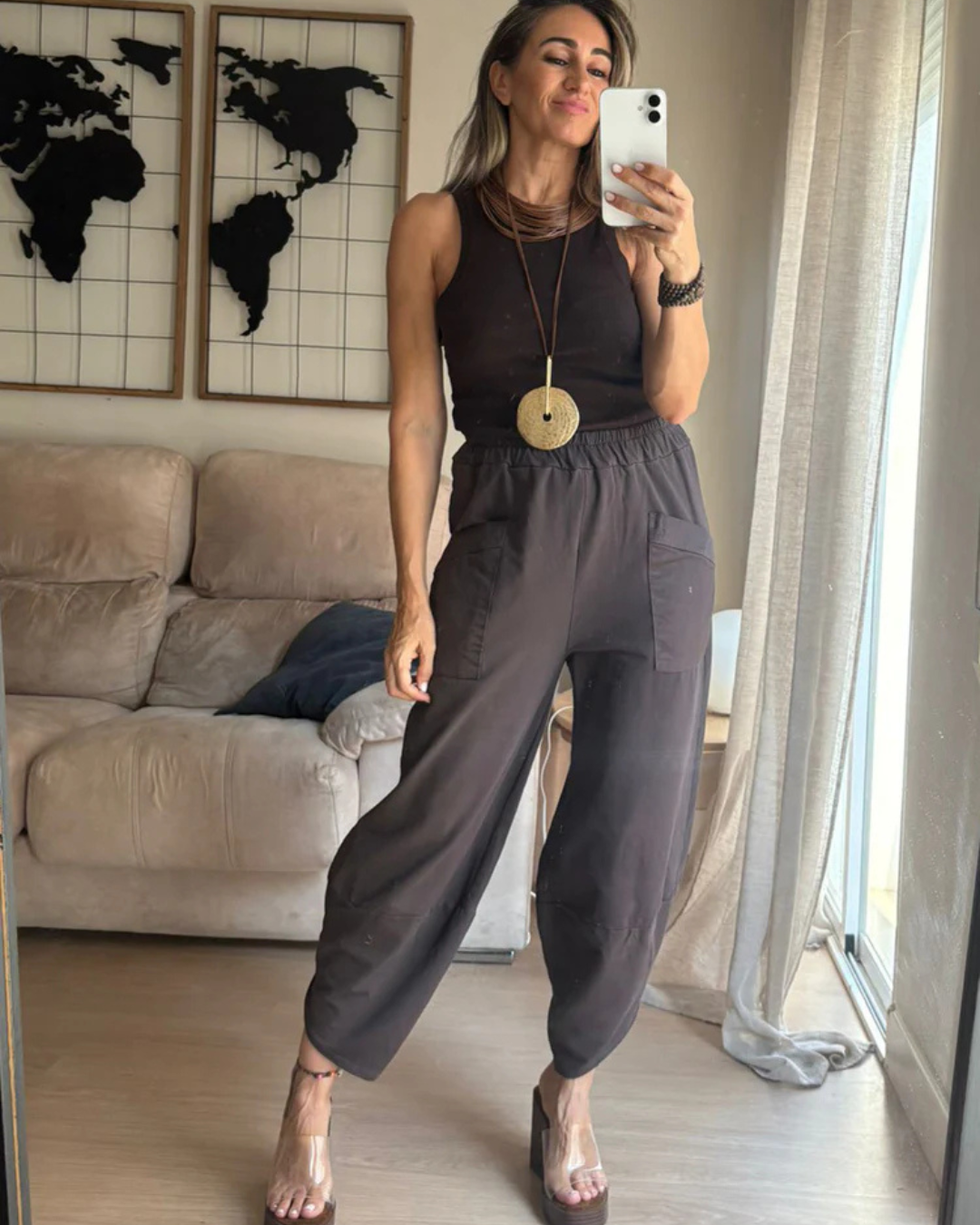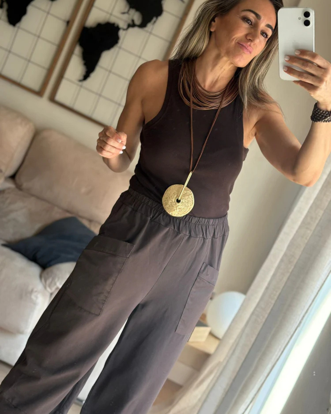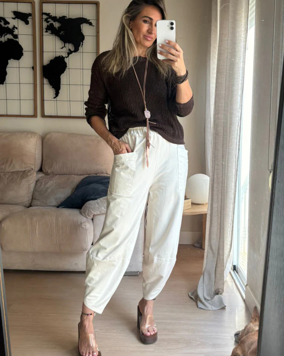 O tecido destas calças não só é suave, como também transpirável, o que as torna perfeitas para climas quentes. Pode combiná-las com sandálias, ténis ou saltos altos, adaptando-as facilmente a diferentes estilos.