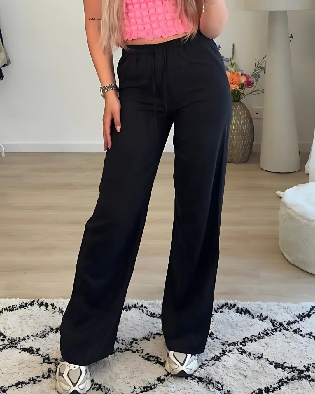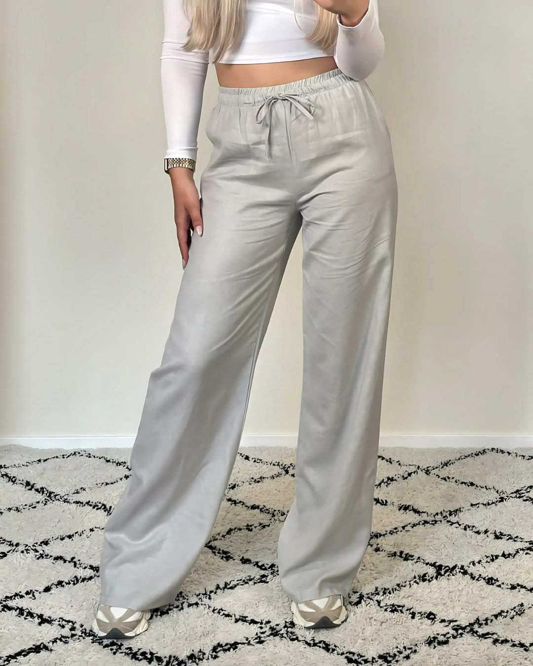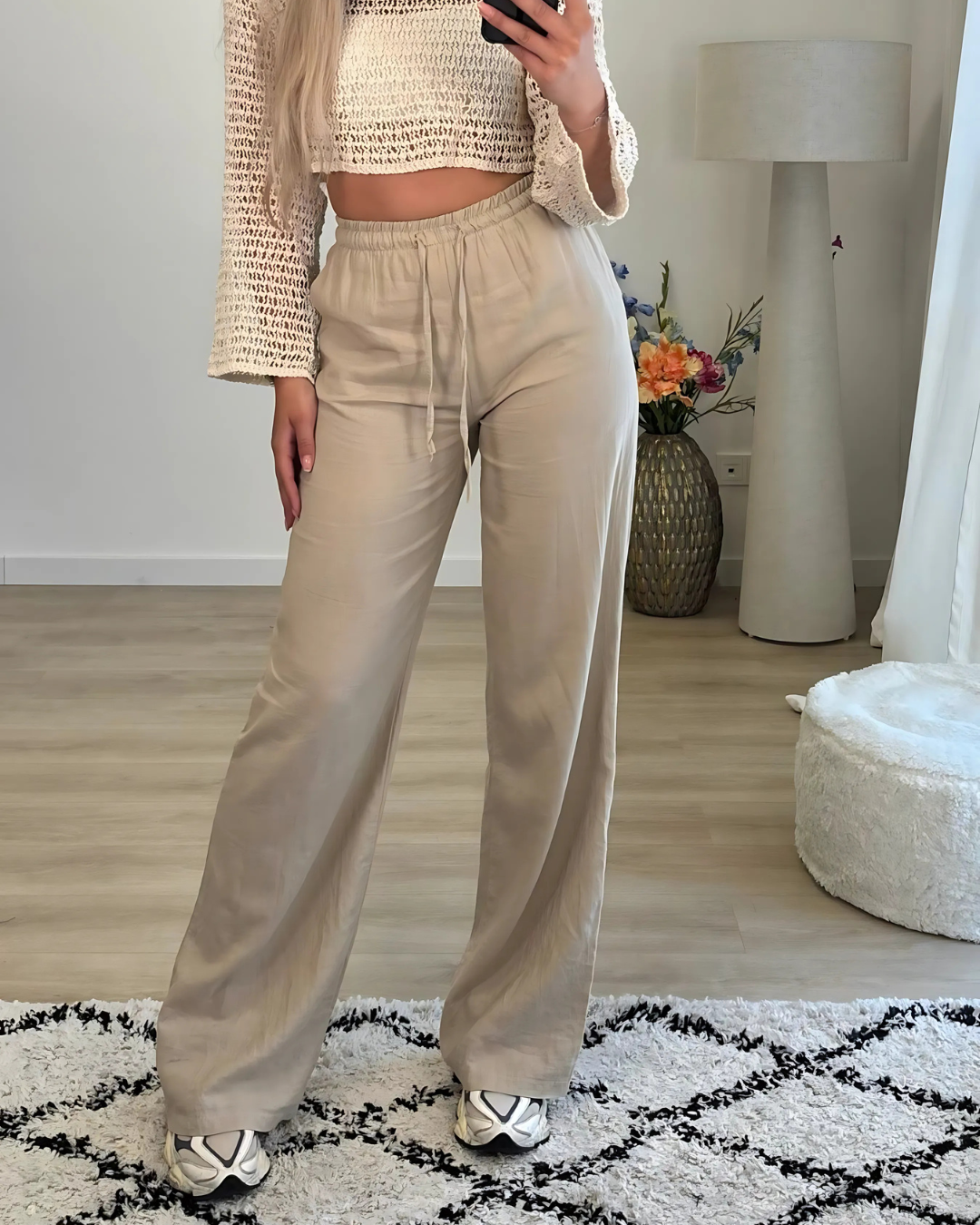 A silhueta ampla e o acabamento elegante permitem combinar estas calças tanto com sapatilhas descontraídas quanto com saltos para um look mais refinado.