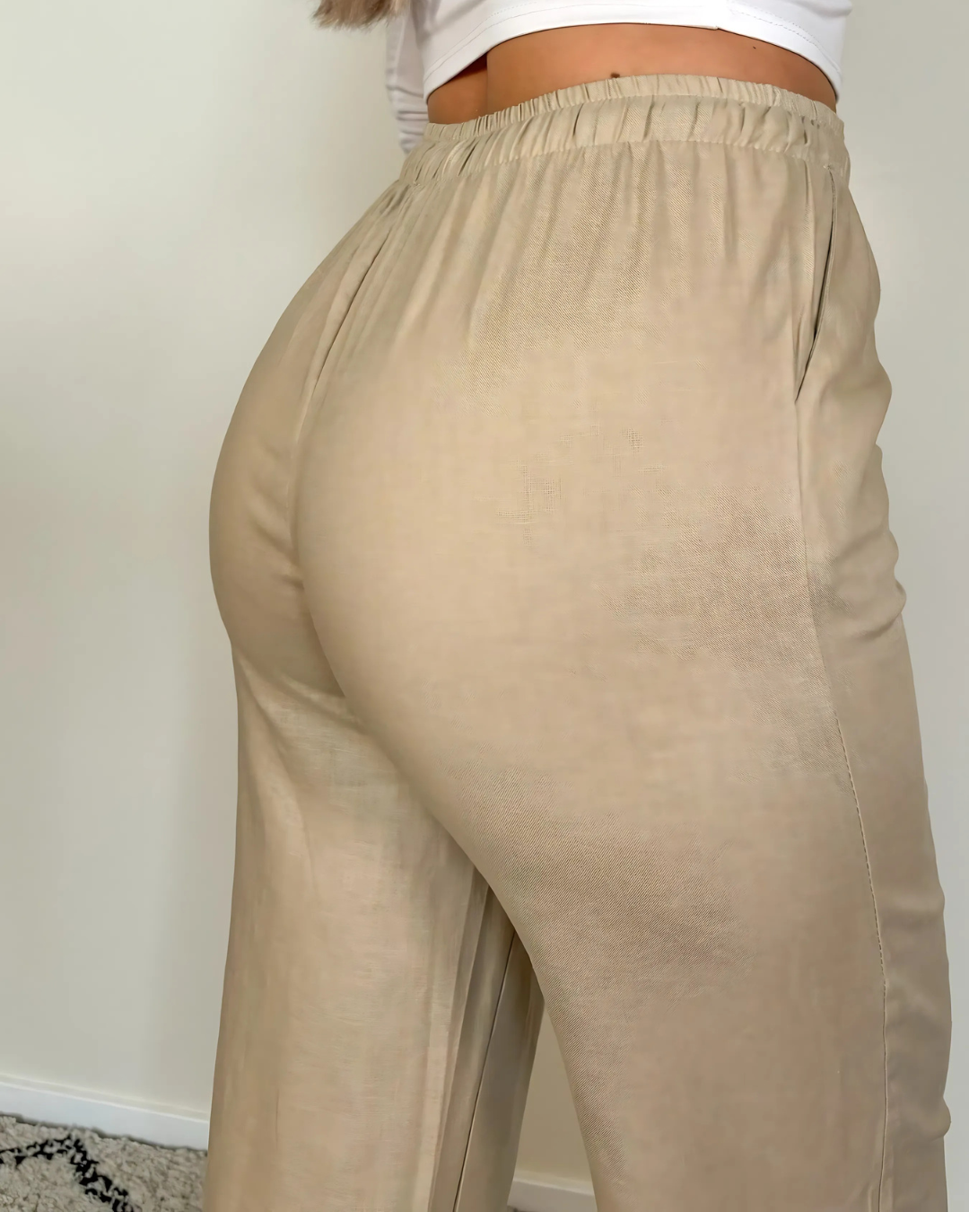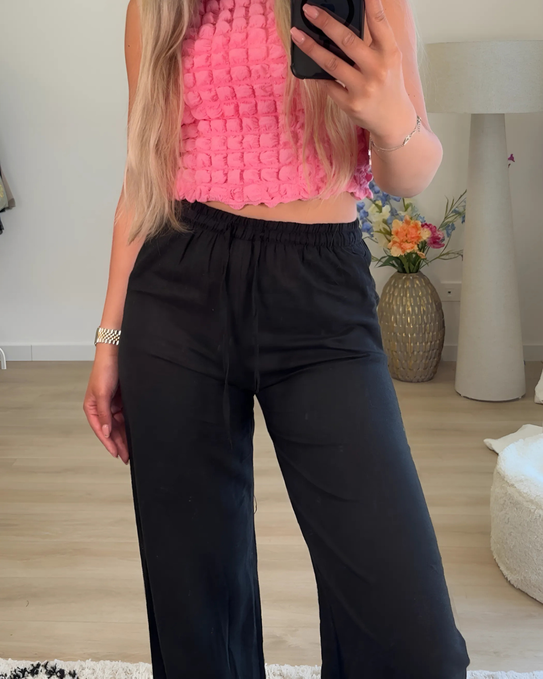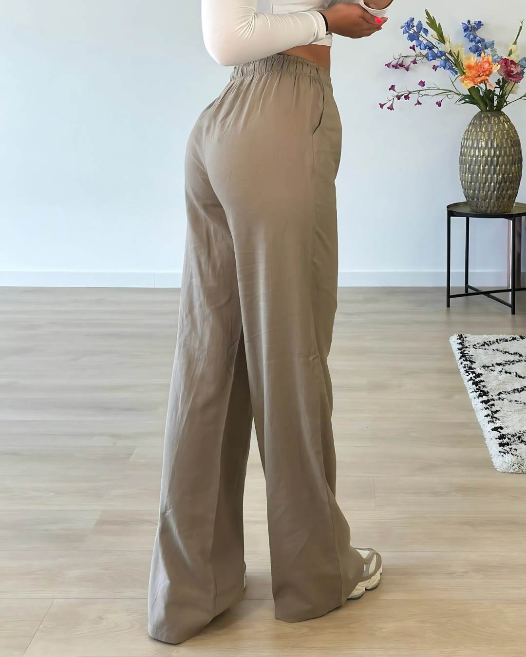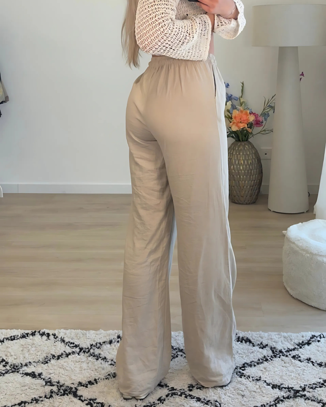 A silhueta ampla e o acabamento elegante permitem combinar estas calças tanto com sapatilhas descontraídas quanto com saltos para um look mais refinado.