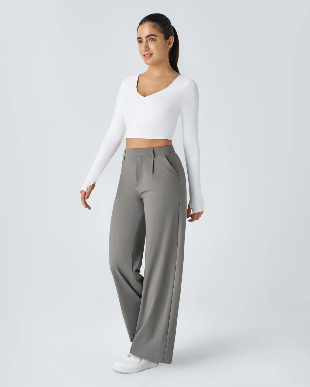 A silhueta ampla e o acabamento elegante permitem combinar estas calças tanto com sapatilhas descontraídas quanto com saltos para um look mais refinado.