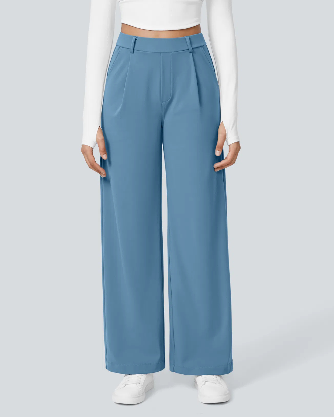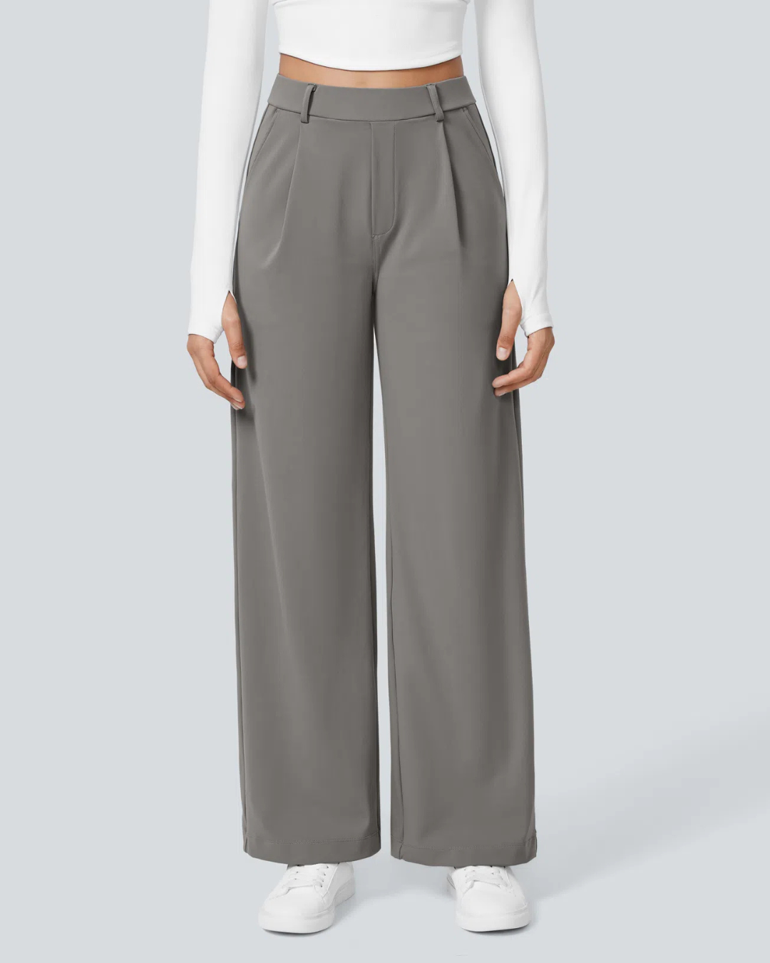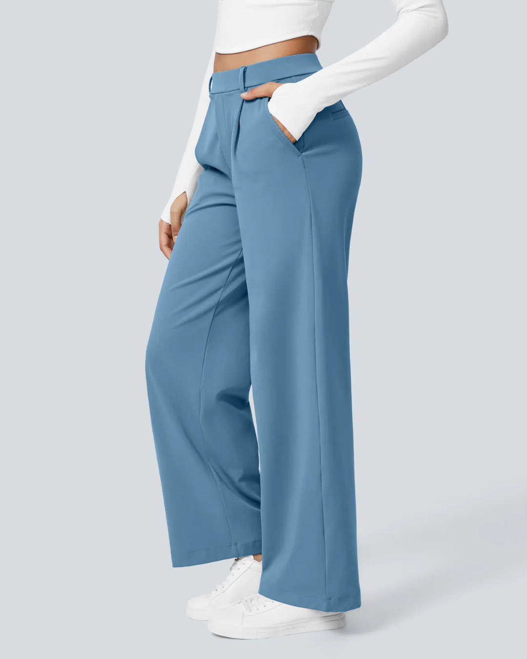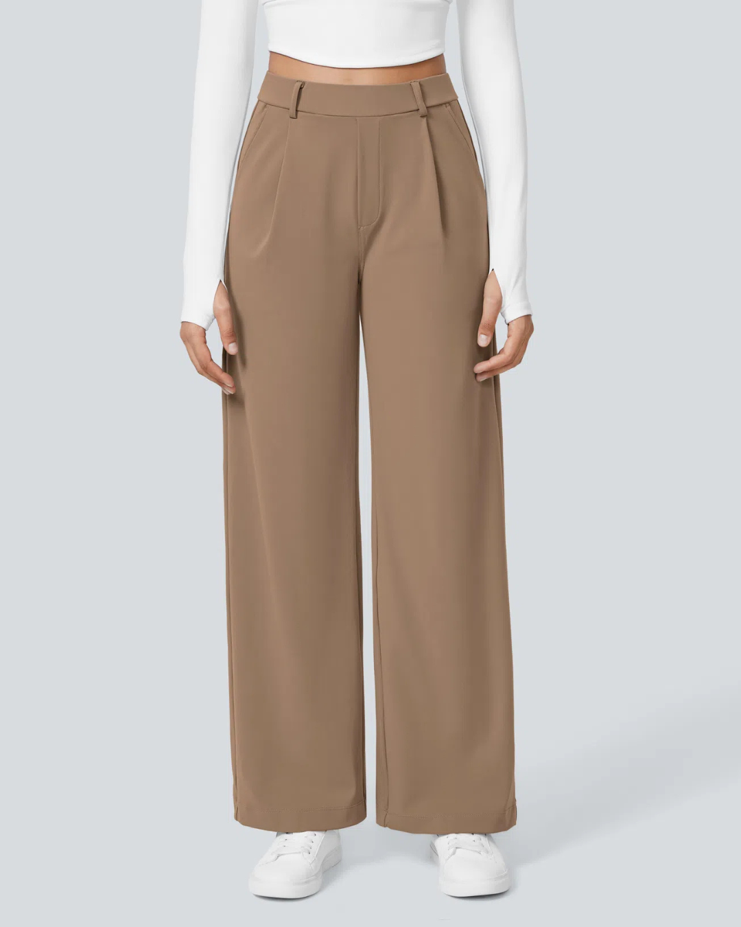 Calças largas em tecido elástico com um corte confortável e um estilo versátil