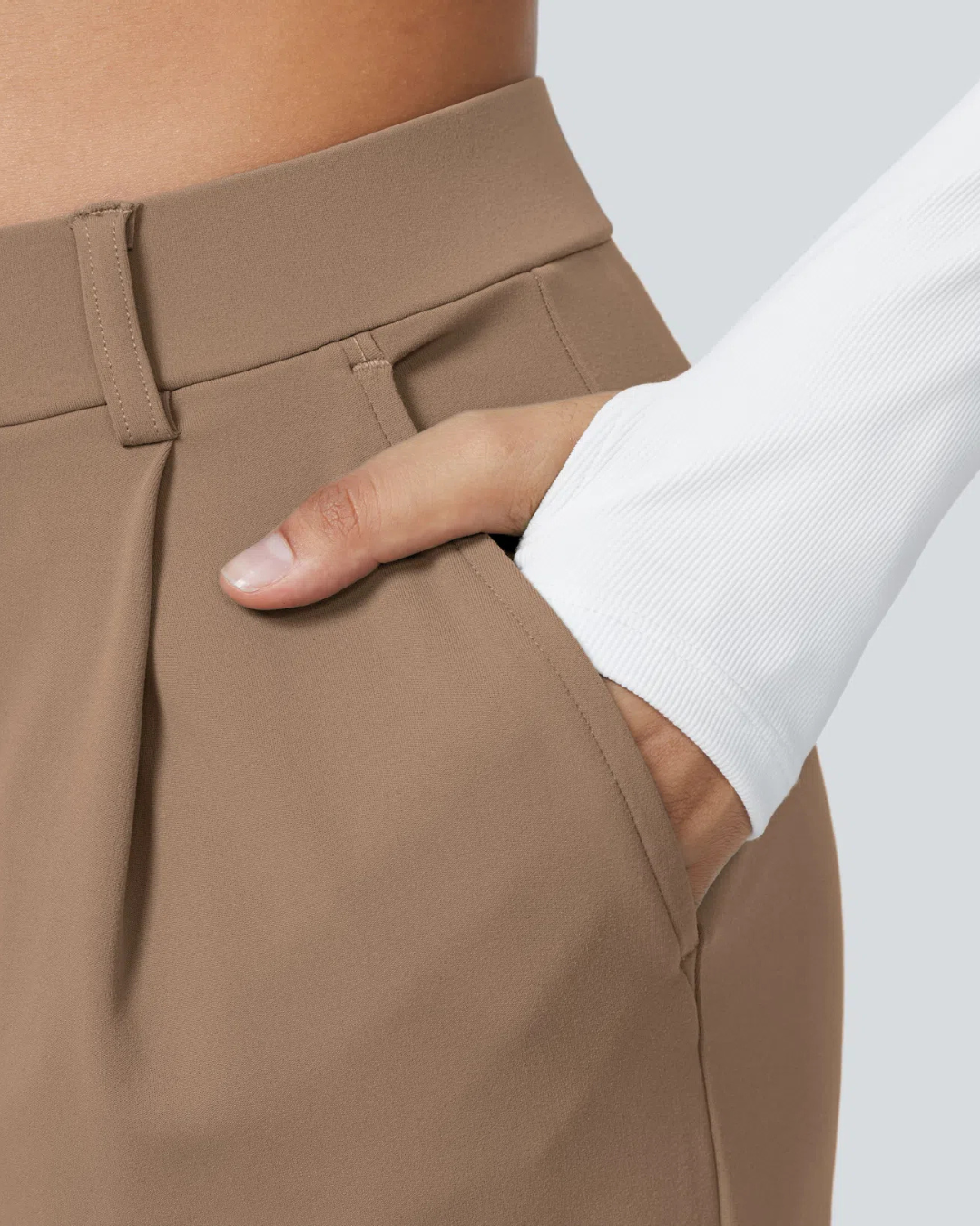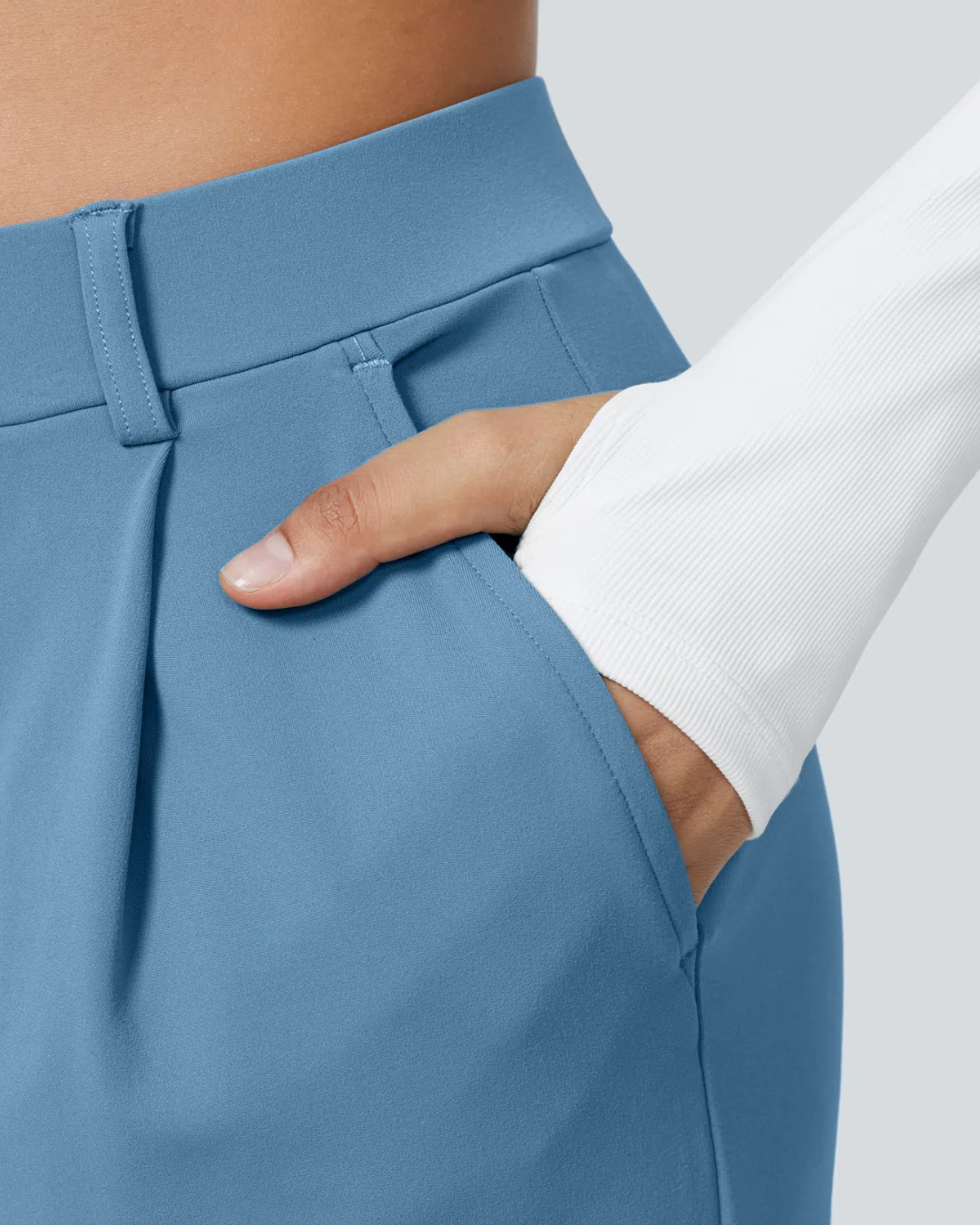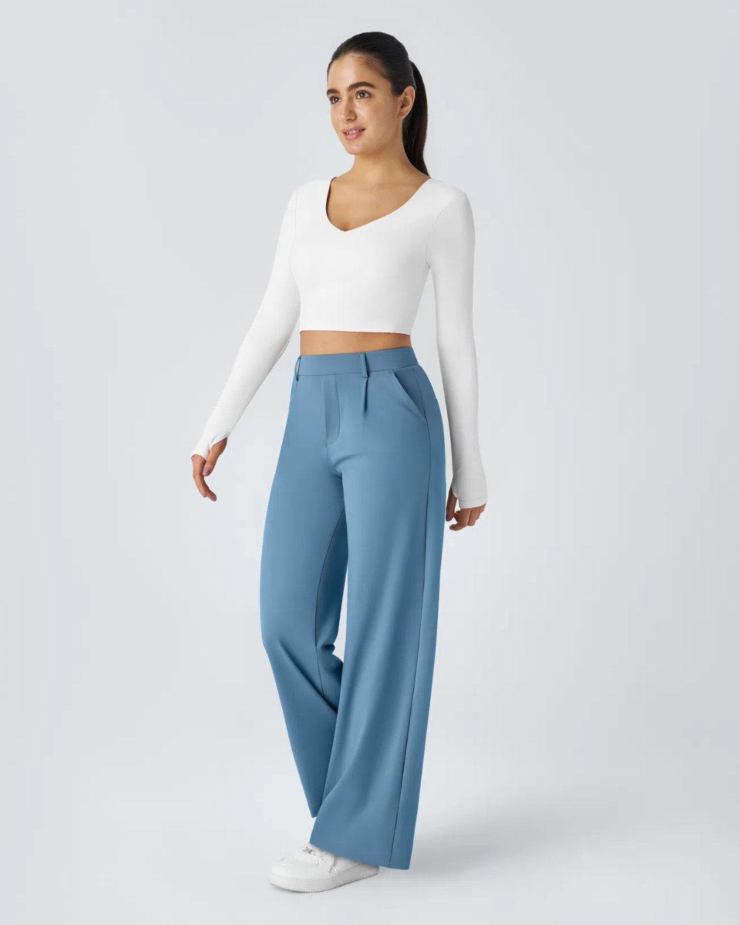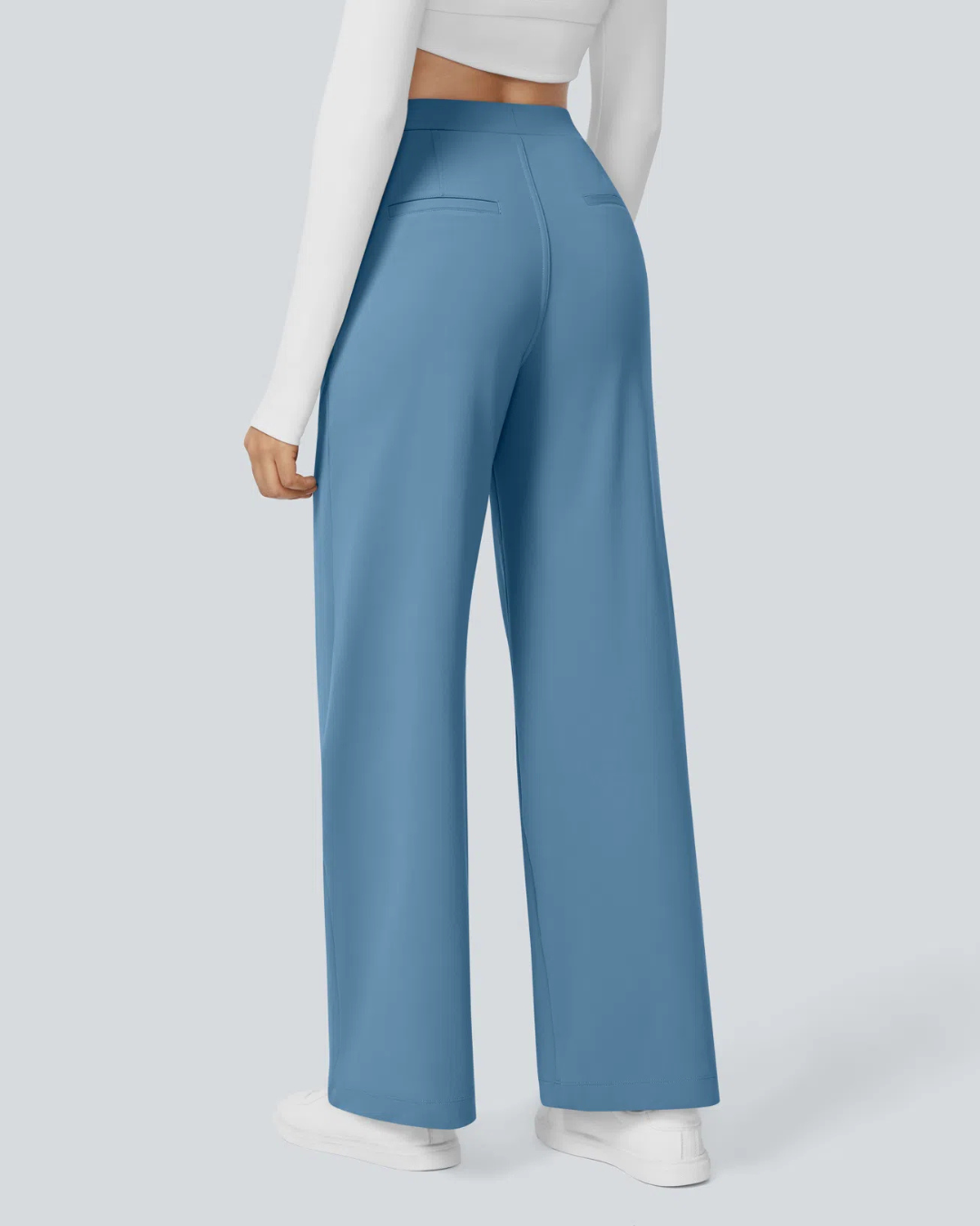 Calças largas em tecido elástico com um corte confortável e um estilo versátil
