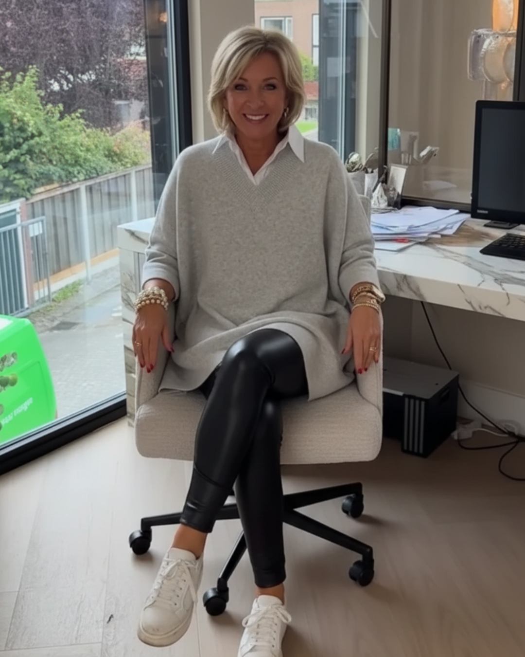 A sua silhueta solta e o decote redondo fazem desta camisola uma peça confortável e intemporal. É perfeita para criar looks casuais com leggings, jeans ou botas, sem perder aquele ar chique que tanto gosta.