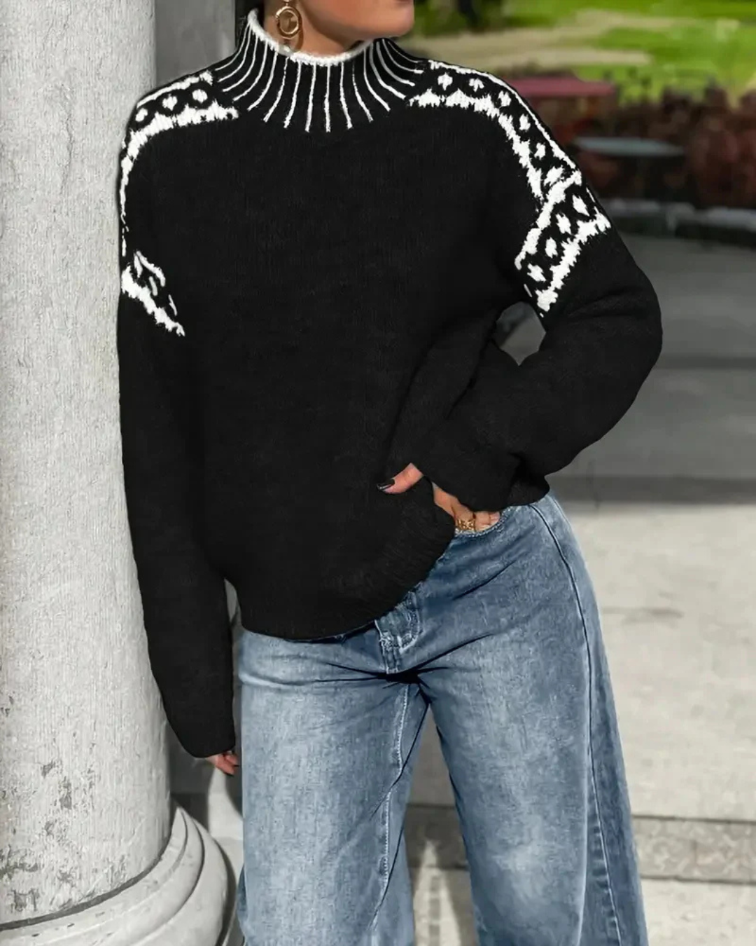 Com esta camisola, não terá de sacrificar o estilo pelo calor. A sua gola alta proporciona um abrigo extra, protegendo-a do frio. É a peça perfeita para se manter confortável e à vontade nos meses mais frios do ano.