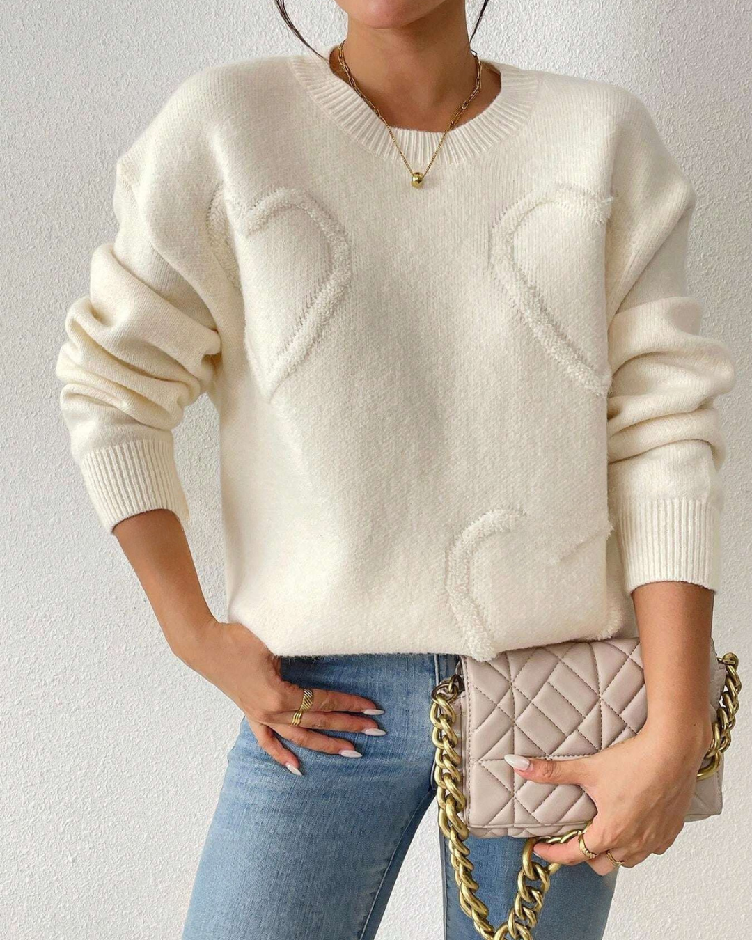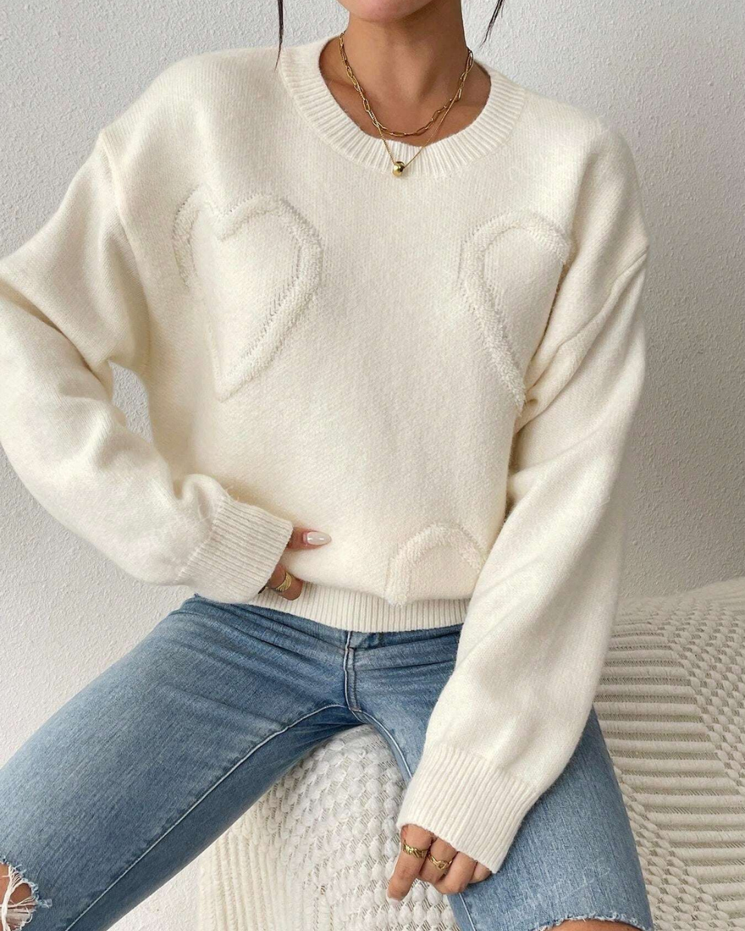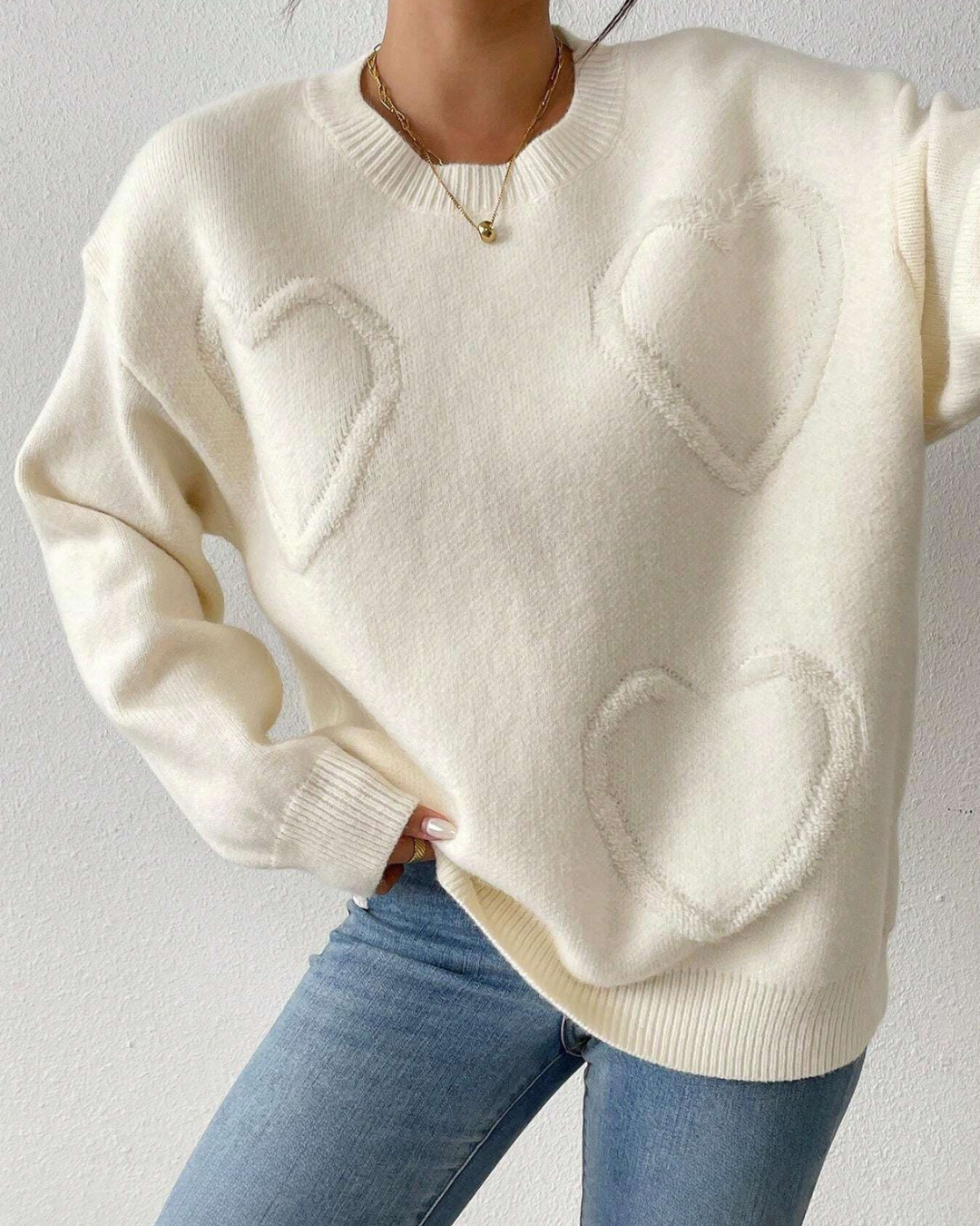 Camisola de Gola Redonda com Ombros Descaídos em Design Clássico de Coração