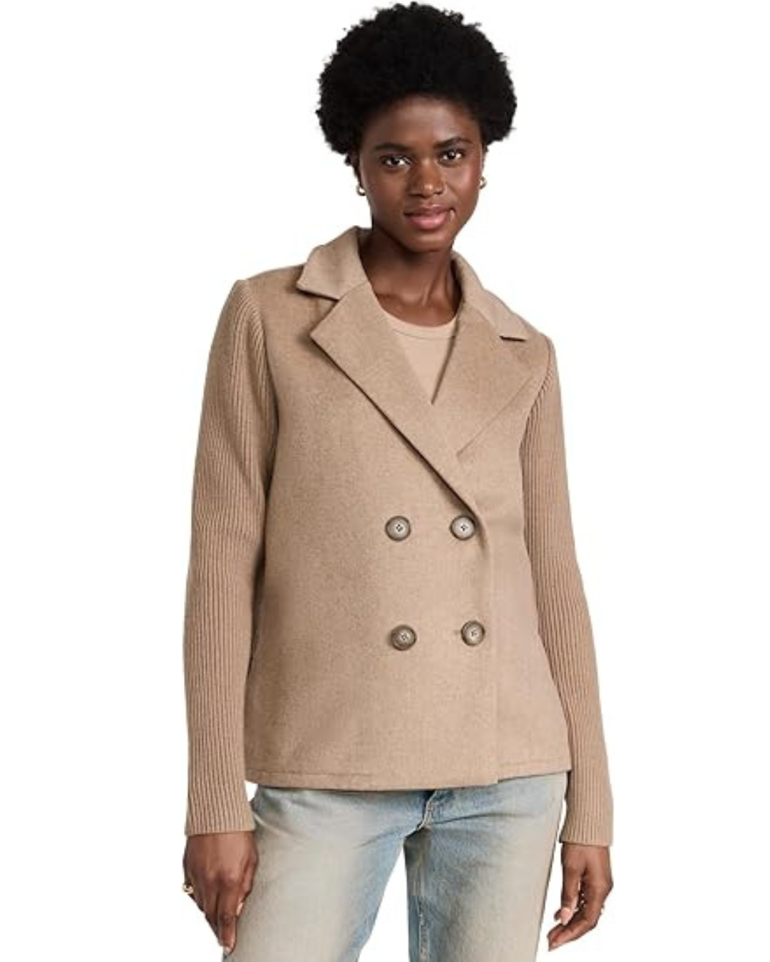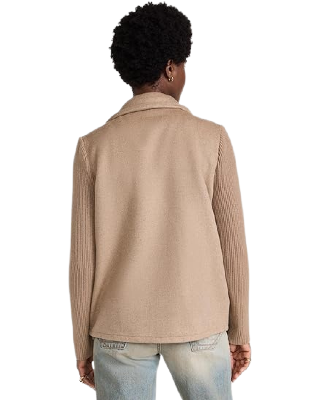 Casaco Casual de Mulher com Lapela, Botões e Mangas Combinadas, com Bolsos Laterais