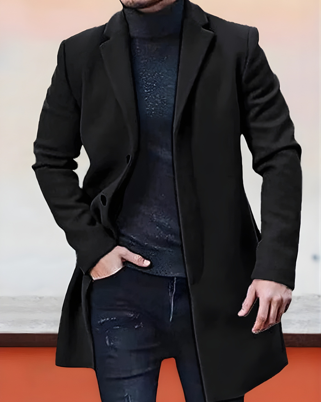 A gola de corte tradicional confere a esta peça um ar de sofisticação inconfundível. Este detalhe de design garante que o casaco transcenda modas passageiras, tornando-o numa peça-chave de distinção para o seu guarda-roupa.