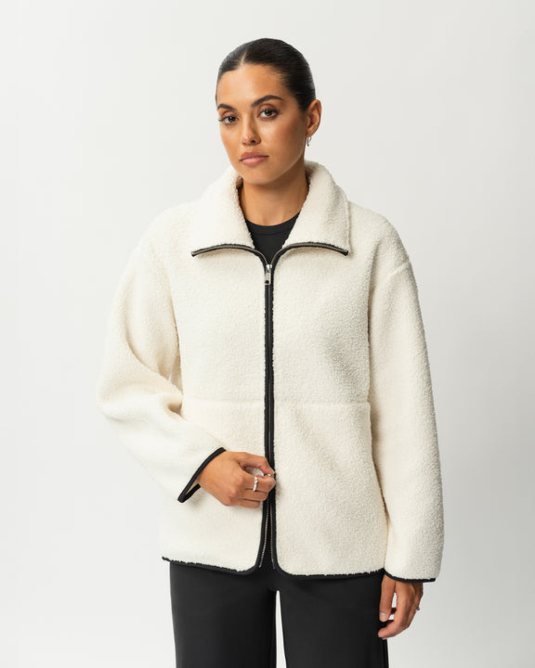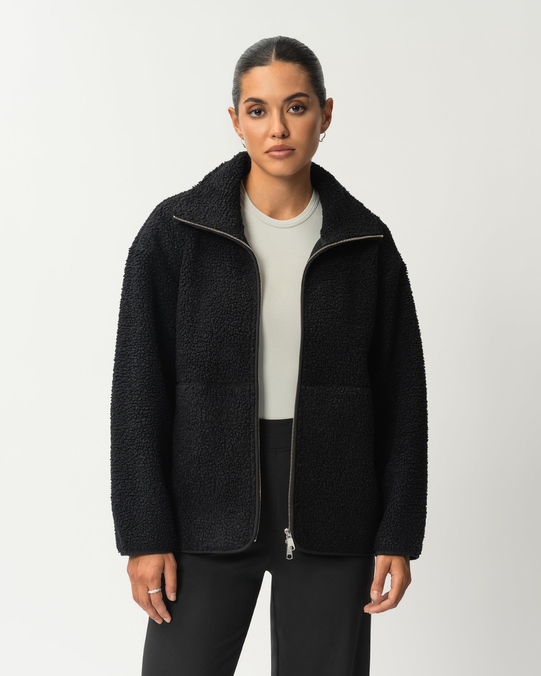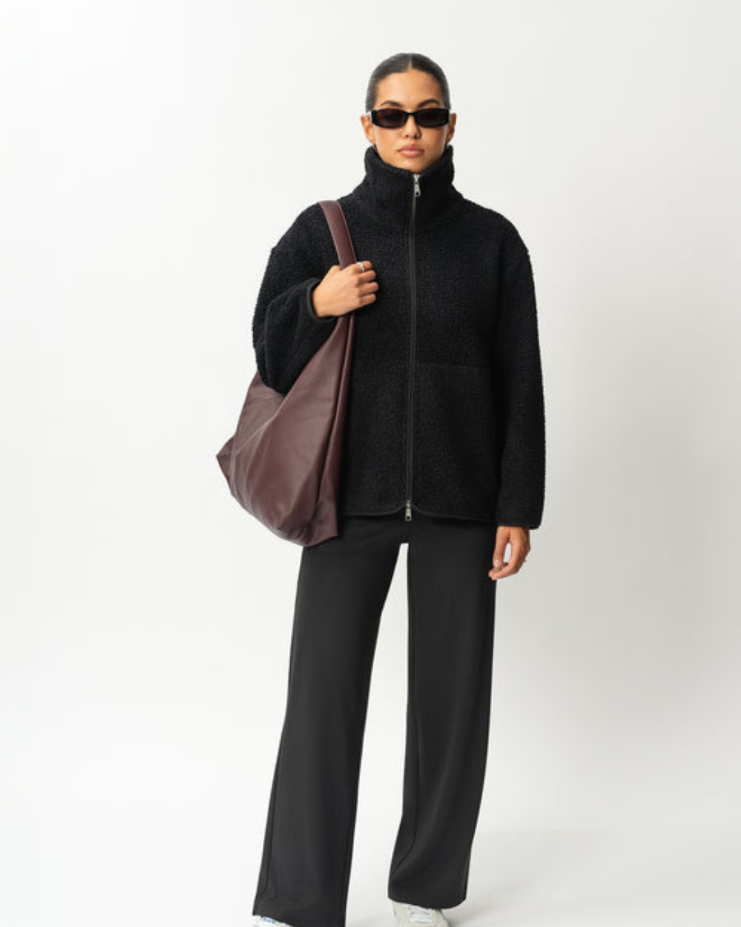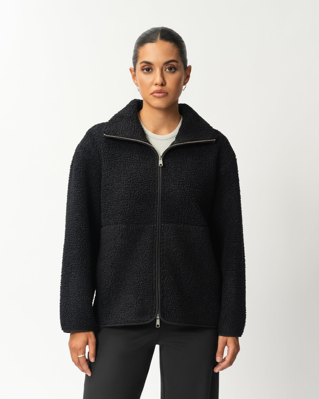 Casaco de Lã com Fecho de Correr à Frente e Gola Alta