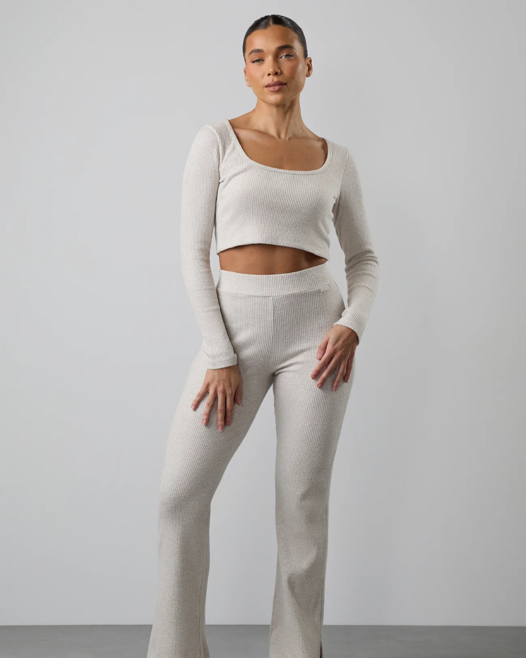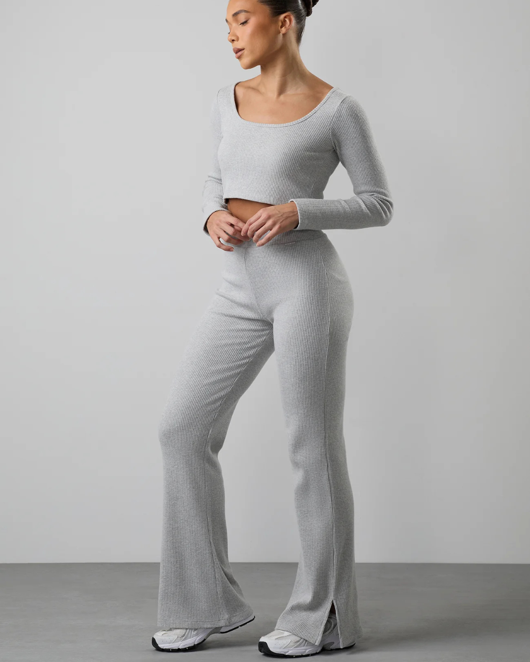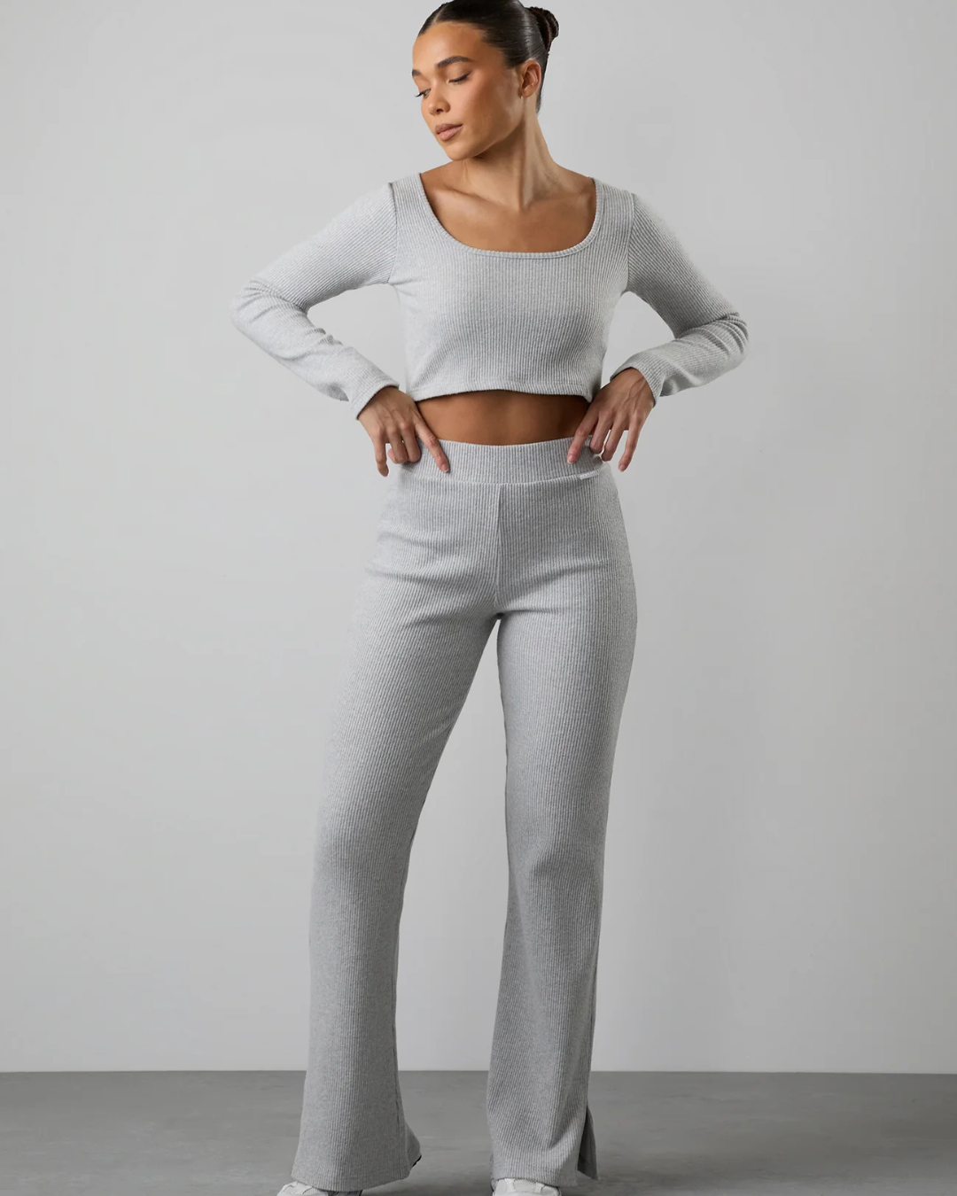 Conjunto de Manga Comprida com Decote Quadrado e Calças com Abertura
