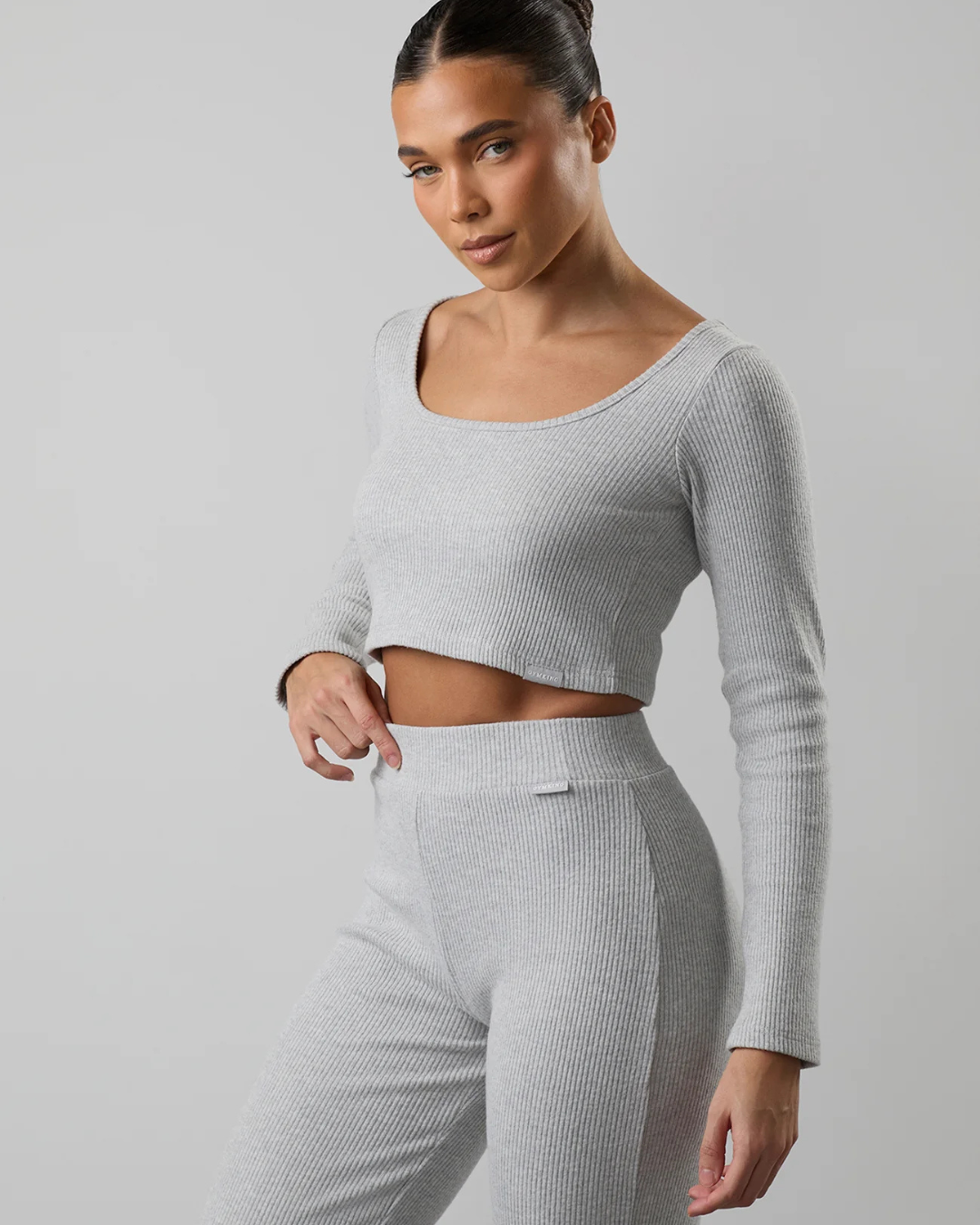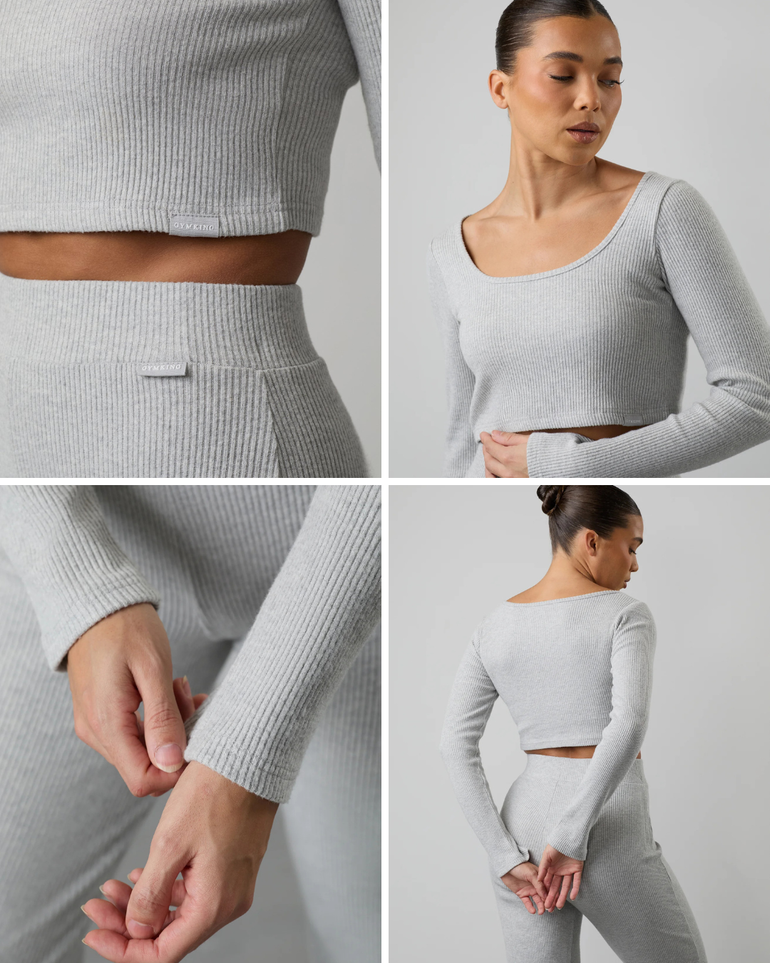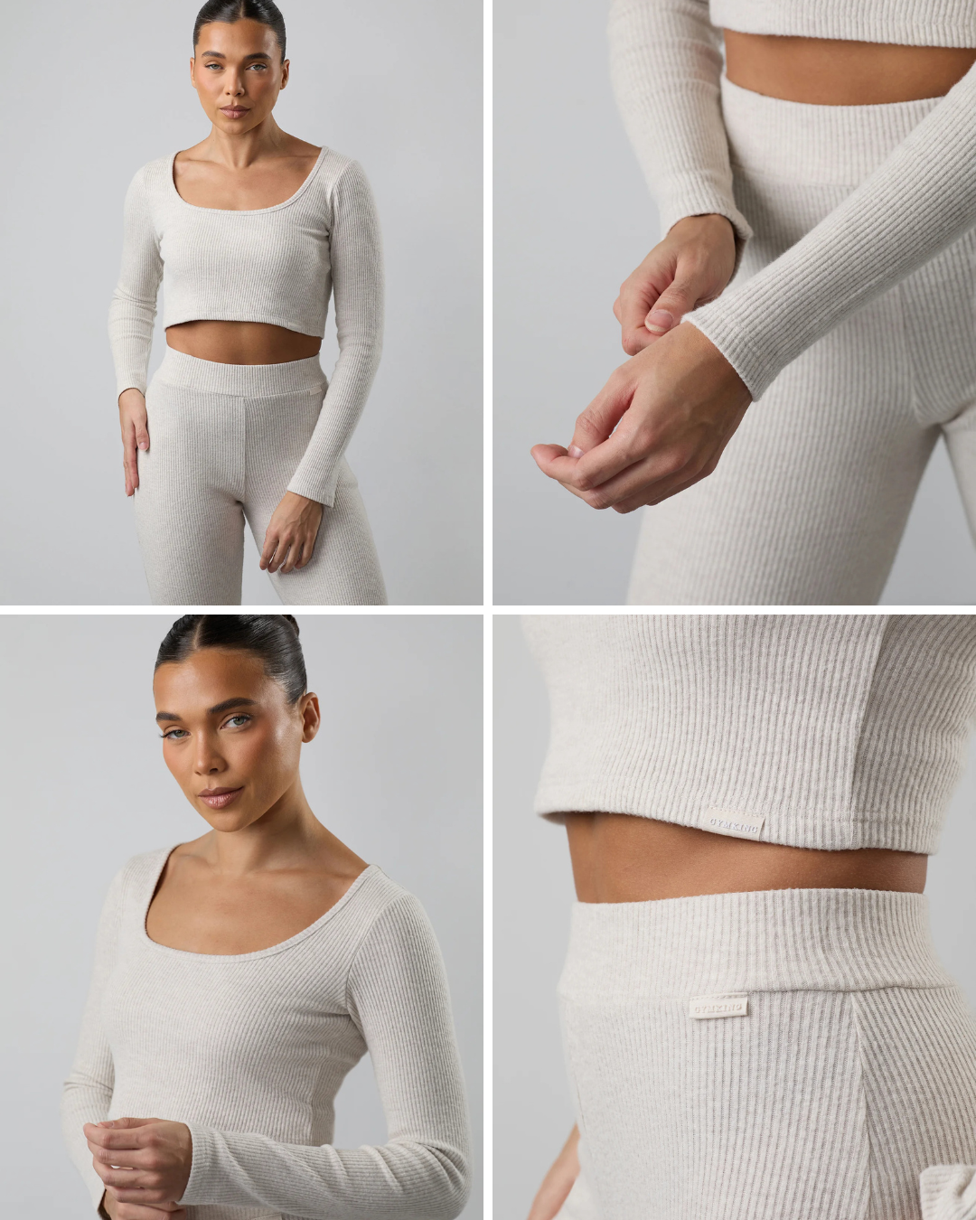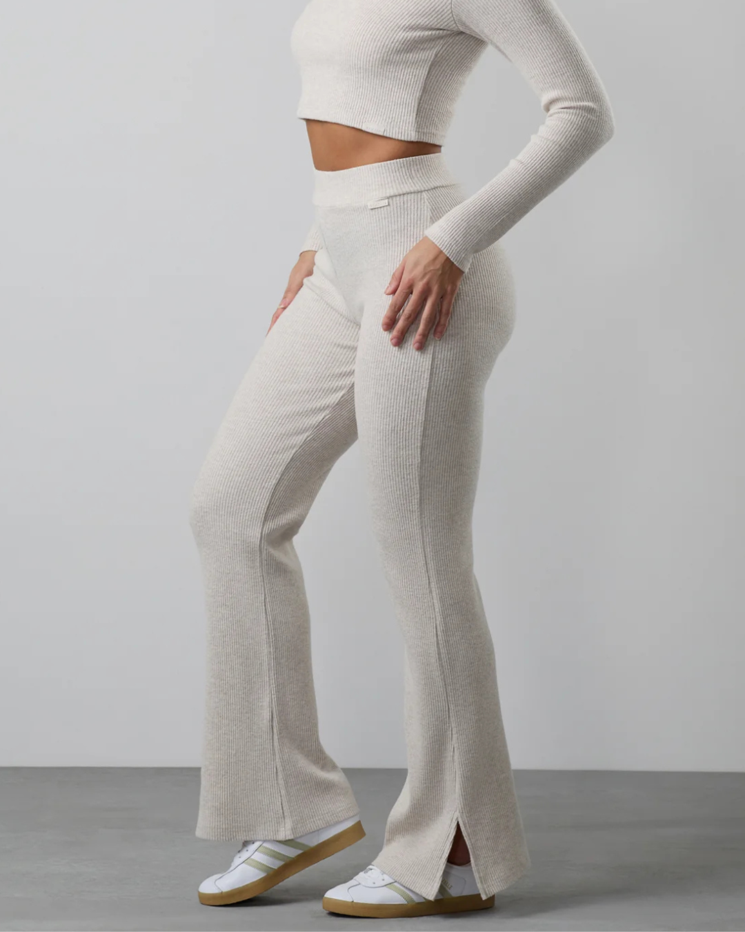 Conjunto de Manga Comprida com Decote Quadrado e Calças com Abertura