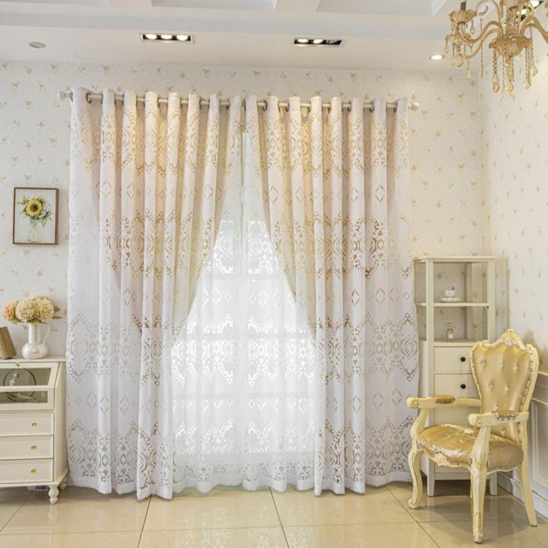 Esta cortina de camada dupla é feita com tecido espesso que bloqueia a luz, garantindo mais privacidade e conforto em qualquer espaço.