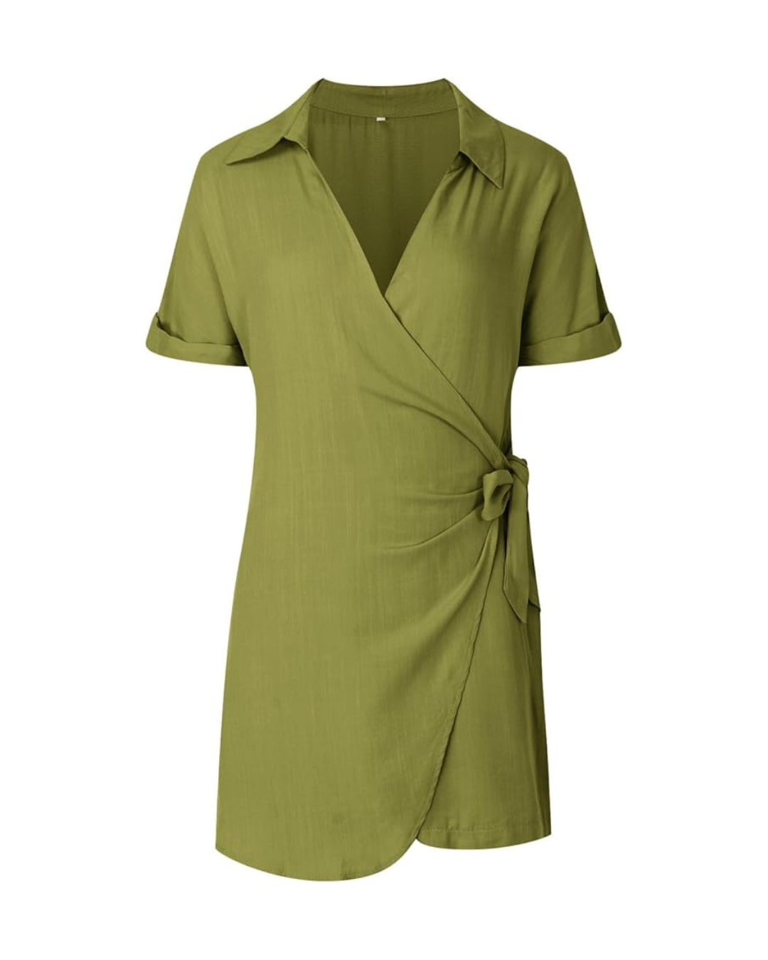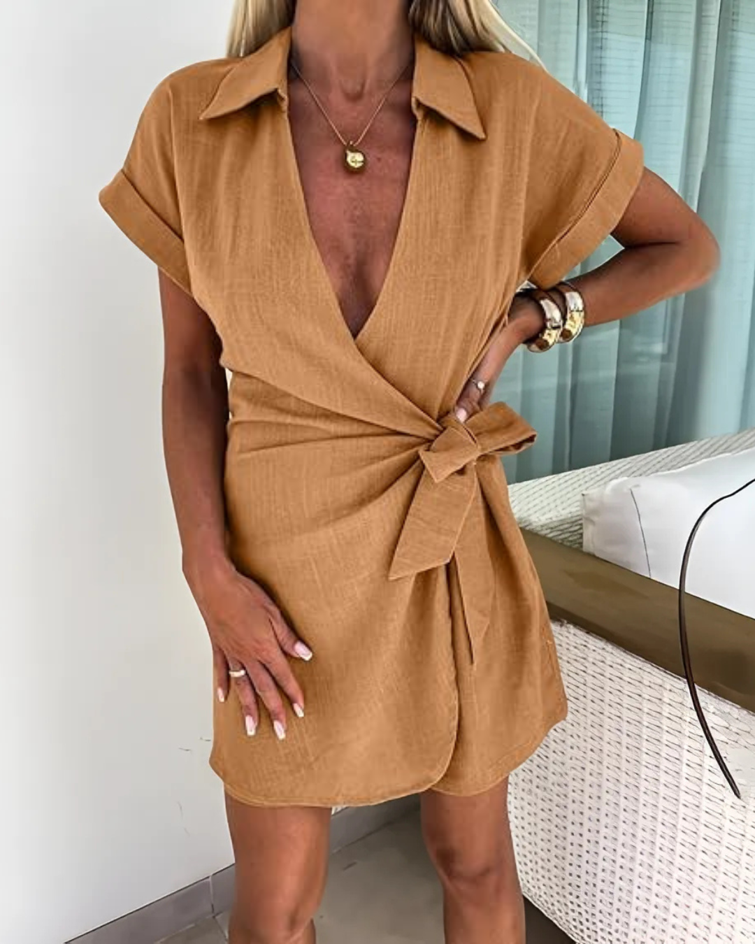 Macacão Casual de Cor Lisa com Decote em V para Mulher