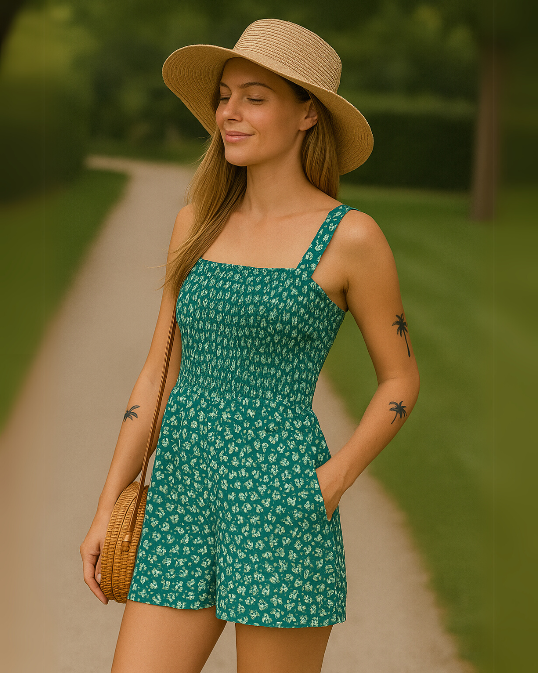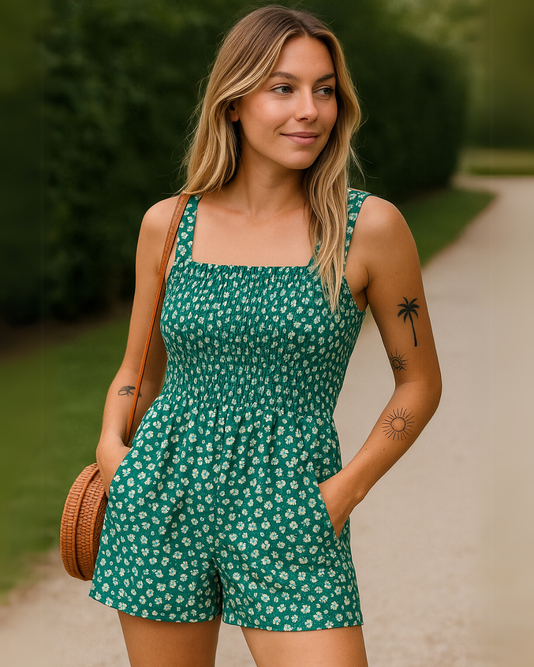 Macacão Curto Casual sem Mangas e com Decote Quadrada para Mulher