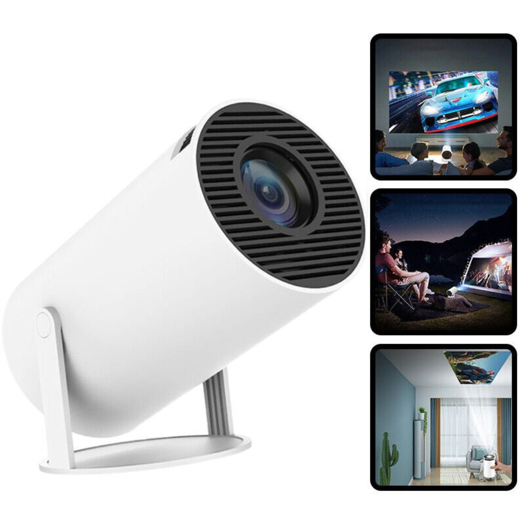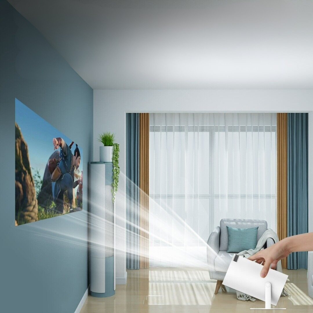Projetor portátil inteligente com rotação de 180° para parede, teto ou qualquer ângulo.